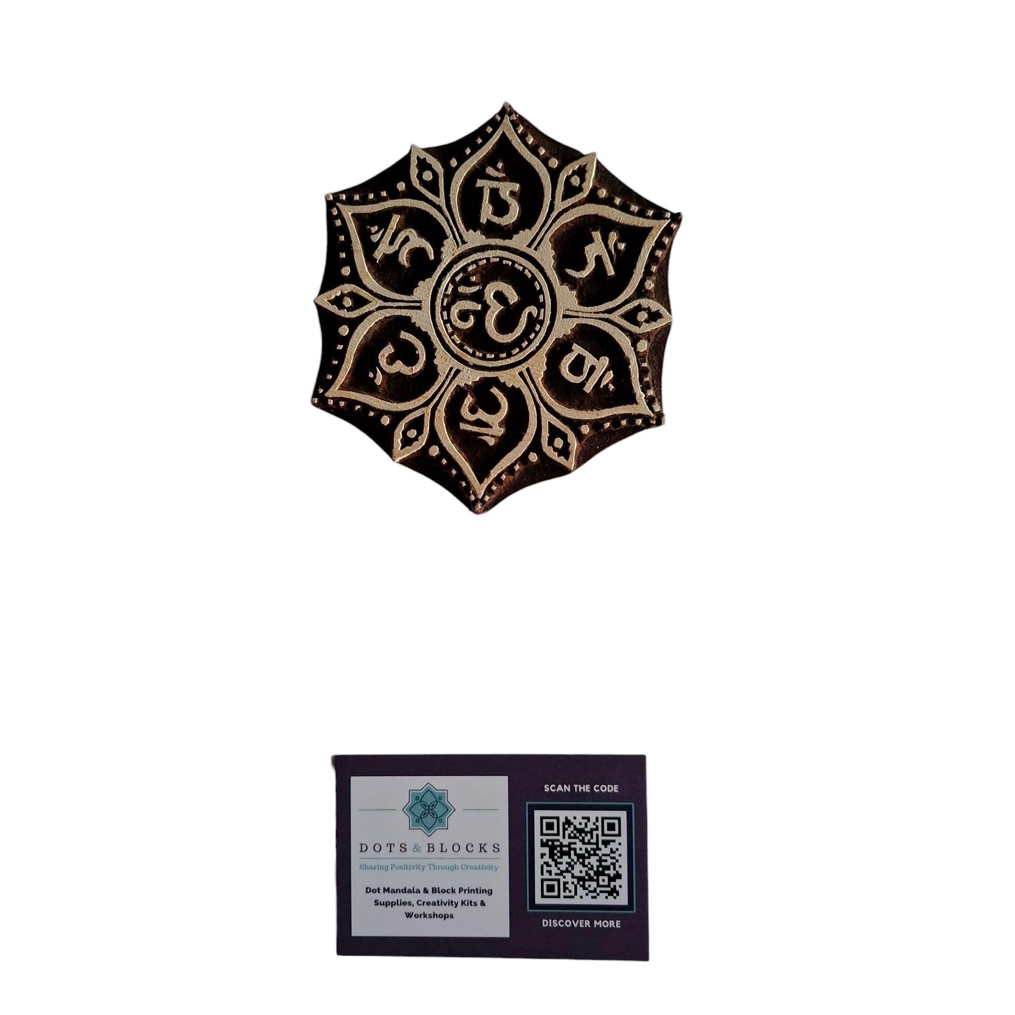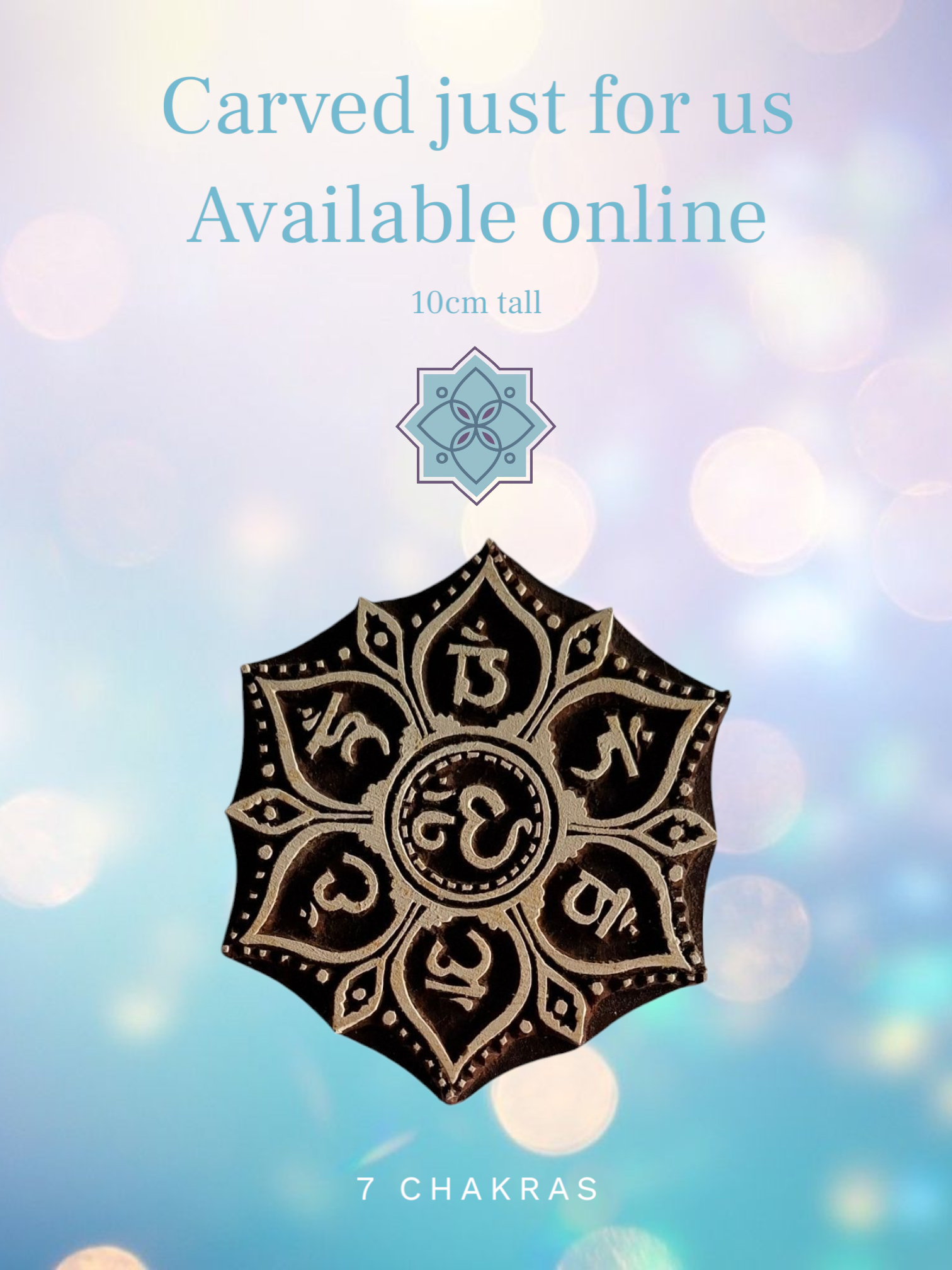 This block was created by commission especially for us – it is for an ornate 7 chakra design wooden printing block – 10cm tall by 9cm wide. Fabulous for use on fabrics & greeting cards as well as gift wrapping paper, paper bags etc.