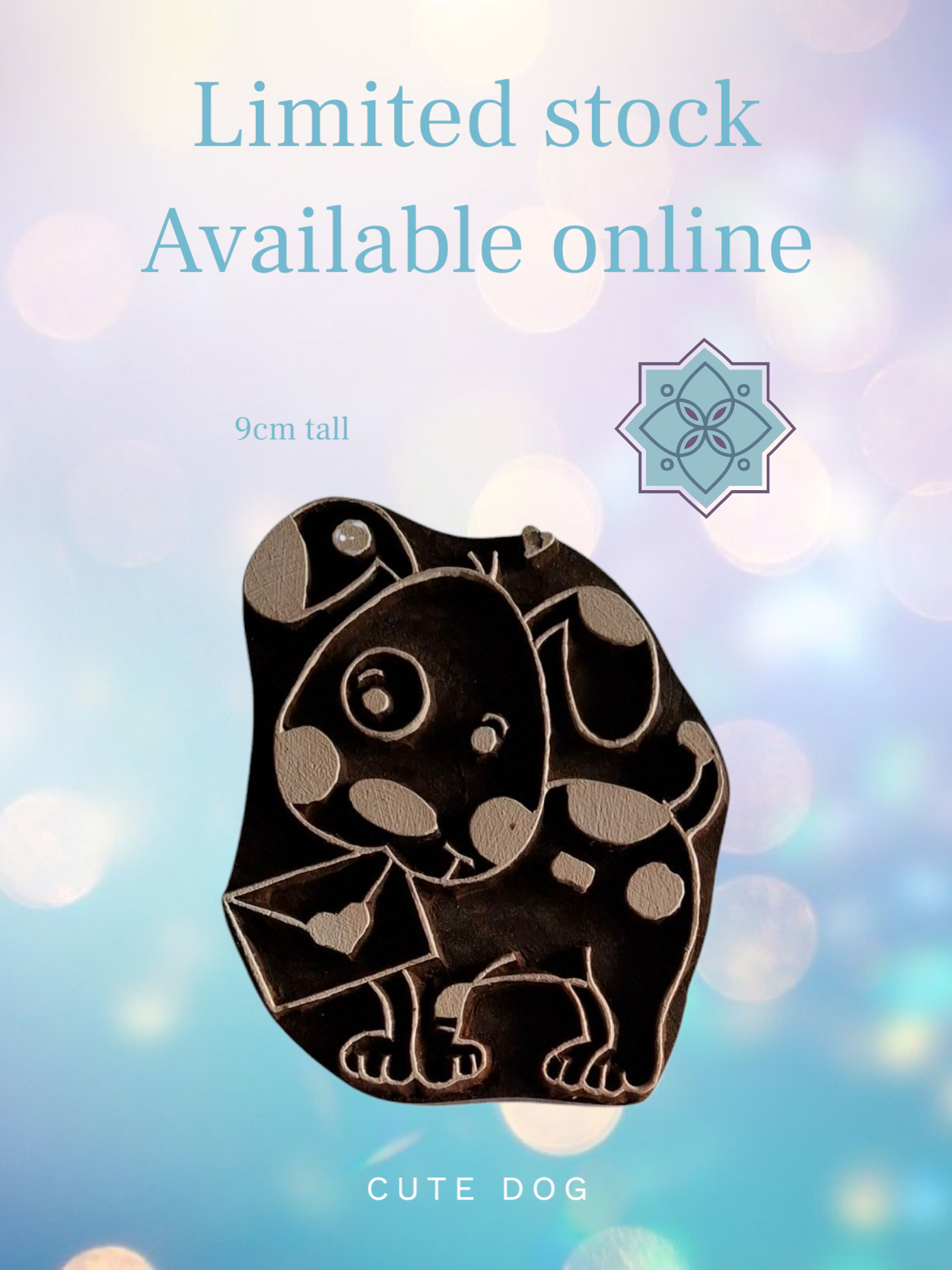 This listing is for a cute doggy wooden printing block – 9cm tall by 8cm wide.